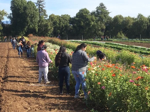 Something really awesome happened this morning. FoodWhat hosted our annual Harvest Festival for a few hundred countywide students as we do each fall. We always set up a strong set of experiential, educational, and food-based stations for participants to dive into after they get to harvest pumpkins. This year, a number of youth spotted the UCSC Farm flowers in the field behind our event and went over to harvest a few to make bouquets. The UCSC folks gave us the green light and FoodWhat staff started inviting youth to go make bouquets if they'd like. While they were harvesting flowers (and making some strikingly gorgeous bouquets), some started picking leaves of spinach or digging up carrots to eat on the spot. Then a group of youth headed to the FoodWhat field and began harvesting our abundance of tomatoes, hot peppers, sweet peppers, more pumpkins...so we invited all participants and teachers to do so. These young people and educators connected organically, on their own terms, and with great joy, in pulling bounty, beauty and nourishment right out of the soil...and on the heels of yesterday's momentous sugar rush. None of this was planned. It was really something to see youth boarding their busses with armfuls of flowers and backpacks filled with veggies that they just harvested.